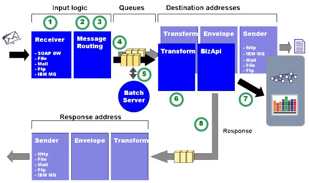 - The Message Router determines which BizAPI to invoke and if any transformer
