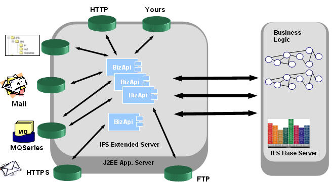 IFS Connect is an integration broker, designed for XML and web services. It can be used to facilitate integration of business logic with external business processes, applications, and devices.