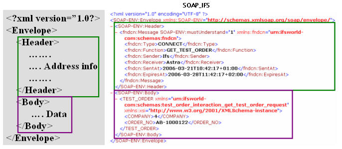 IFS Connect has support for plugging in envelopes (XML Envelope Definitions).