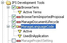 This tab page shows the Presentation Objects arranged by a specific IFS Application Navigator. By default you will see the IFS Enterprise Explorer Navigator.