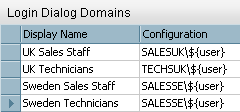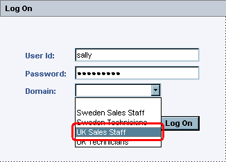 However, it is possible to configure a helpful list of values which Sally can select domains from. This list can have helpful, humanly readable, domain names. With this system, it becomes very easy for Sally to logon: