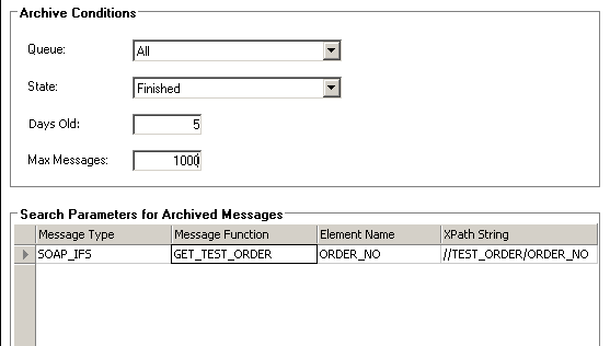 in the archived messages. XPath selection dialog can be used to select 'Element