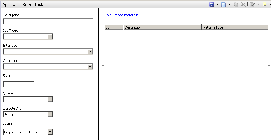 The installation will create a few essential Application Server Tasks in the system. With the feature Schedule Application Server Tasks, it is possible to edit them and create new tasks as well. In the feature, select tab Tasks and click the New toolbar button to create a new task.