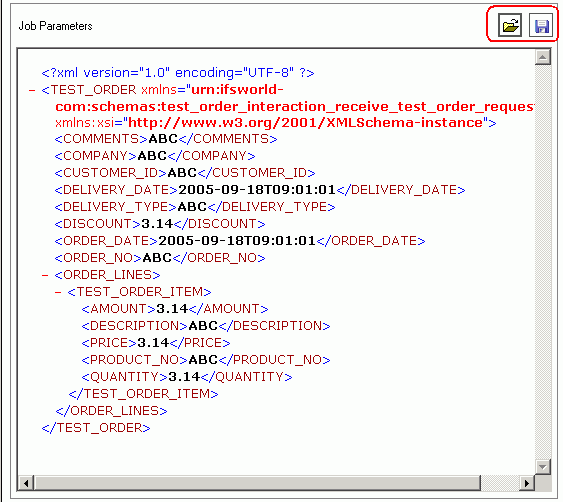If it is required to specify a customized set of job parameters, use the 'Other' job type. Type your job parameters as an XML document in an external editor. And then load it to your task using the load a file button. You can save the existing job parameters as an XML file using the save to file button.