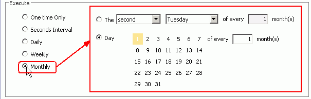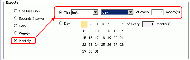 Here we can specify the day in two different ways, either by the date on which the execution should occur or by the day on which the execution should occur.