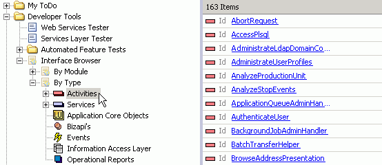 Selecting 'Activities' node under 'By Type' node will list all the activity