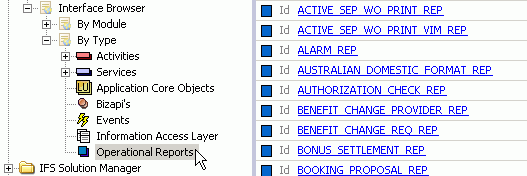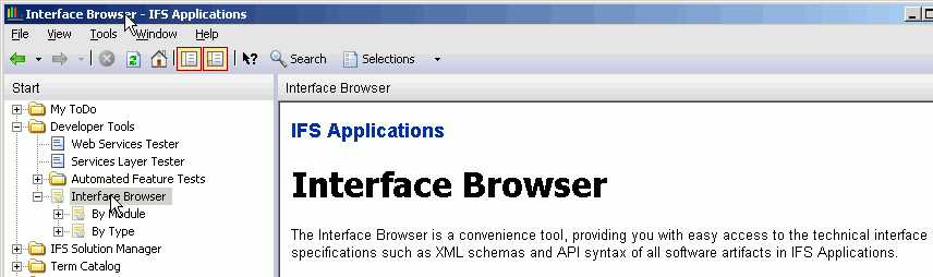The Interface Browser is started up from the IFS Explorer navigator in